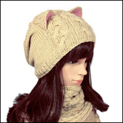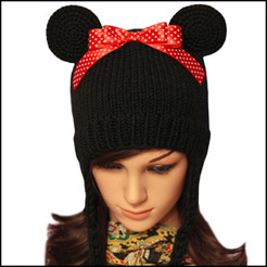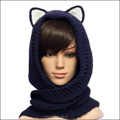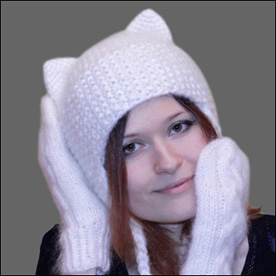 Вязаные шапки с ушками, варежки с лапками, митенки,